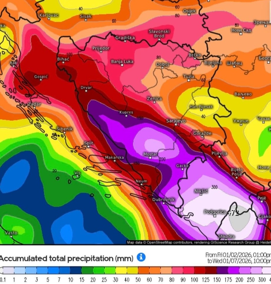 Nakon višednevnih obilnih padavina, vremenske prilike u Bosni i Hercegovini i širem regionu ulaze u osjetno nestabilniju i hladniju fazu. Prema aktuelnim meteorološkim prognozama i kartama akumuliranih padavina, u narednim danima očekuje se kombinacija jake kiše, snijega i naglog zahlađenja, što bi moglo uzrokovati brojne probleme, posebno u saobraćaju i na područjima sklonim klizištima.